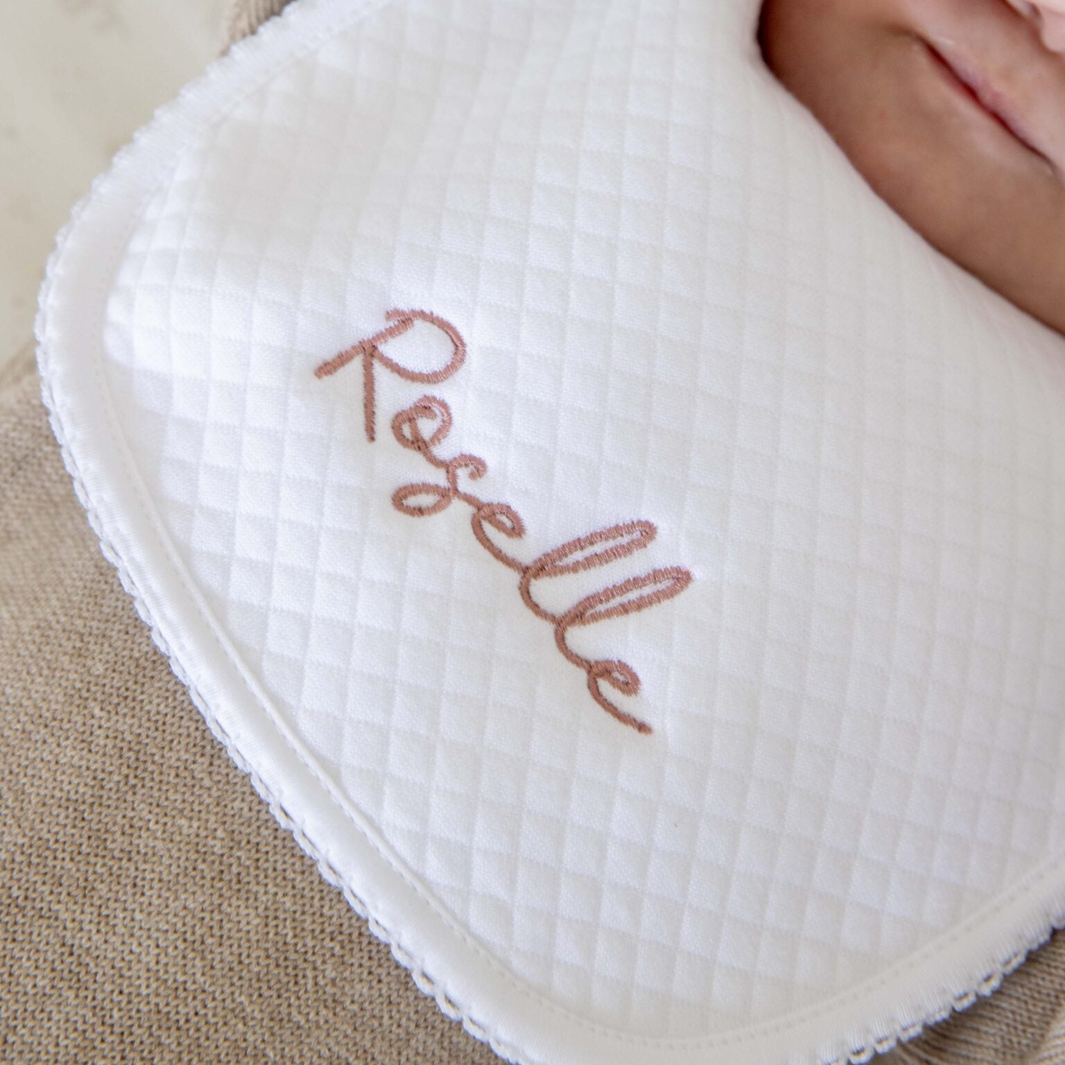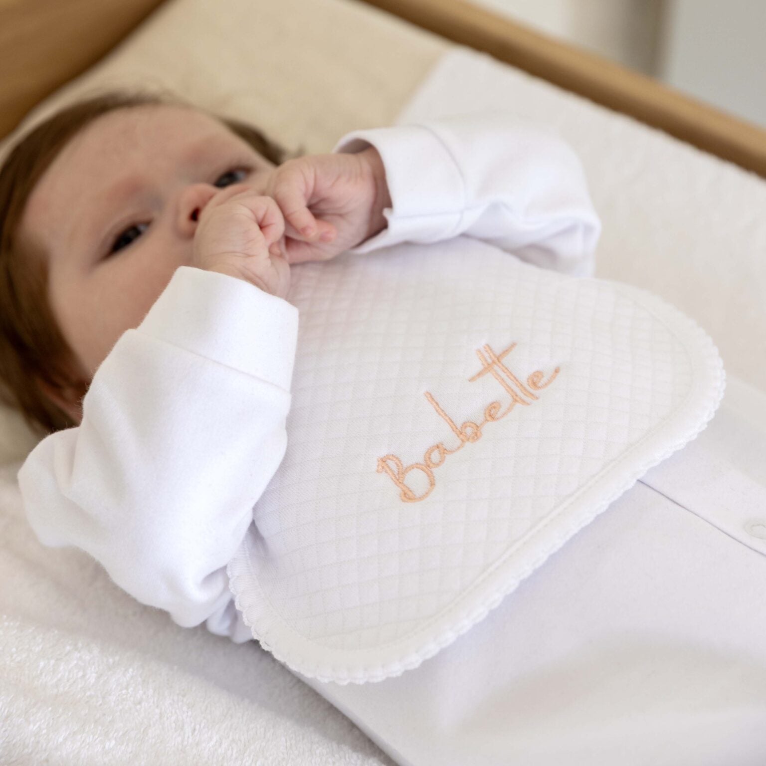 Voorkant in doorstikte stof losange, achterkant in witte badstof